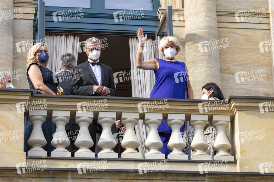 Bernd Sibler und Monika Grütters bei der Eröffnung der Richard-Wagner-Festspiele 2021 mit der Premiere von Richard Wagners 'Der fliegende Holländer' im Bayreuther Festspielhaus. Bayreuth, 25.07.2021