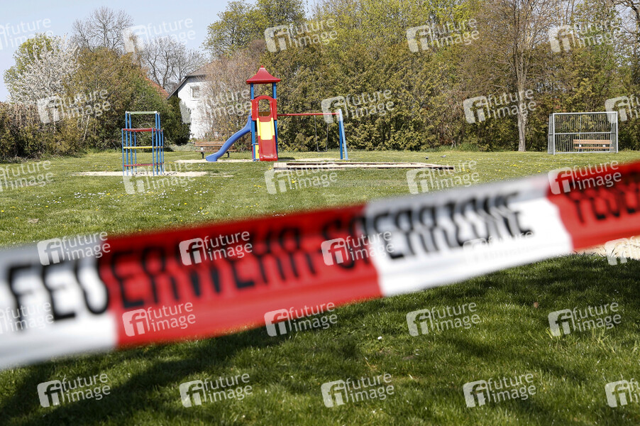 Wegen der Coronakrise gesperter Kinderspielplatz. Petersdorf, 18.04.2020