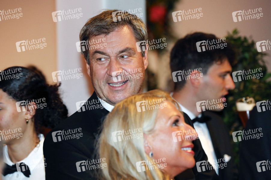 Markus Söder mit Ehefrau Karin Baumüller-Söder beim Staatsempfang nach der Eröffnung der 112. Richard-Wagner-Festspiele 2024 im Neuen Schloss Bayreuth. Bayreuth, 25.07.2024