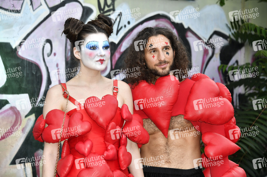 Klaudia Giez und Adriano Salvaggio bei der Premiere der internationalen Ausstellung 'Tim Burton's Labyrinth' in der Radsetzerei auf dem RAW-Gelände. Berlin, 18.07.2024
