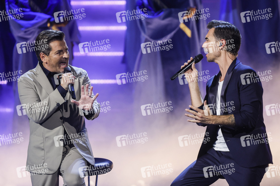 Thomas Anders und Florian Silbereisen bei der Aufzeichnung der TV Show 'Zum allerletzten Mal: Der grosse Schlagerabschied!' im Studio 3 der Media City. Leipzig, 22.10.2022
