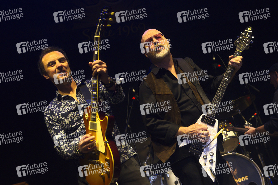Mark Abrahams und Andy Powell von Wishbone Ash live beim 'Music & Stories 2020'-Konzert im Tempodrom. Berlin, 21.01.2020