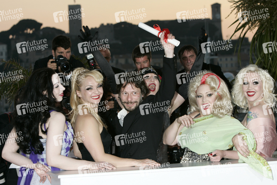 Mathieu Amalric mit Schauspielerinnen und dem Preis für die beste Regie bei 'Tournée' beim Photocall mit den Preisträgern auf dem Festival de Cannes 2010 / 63. Internationale Filmfestspiele von Cannes am Palais des Festivals. Cannes, 23.05.2010