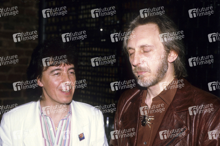 Bill Wyman von Willie and the Poor Boys und John Entwistle von The Who bei einem Pressetermin. London, 18.04.1985