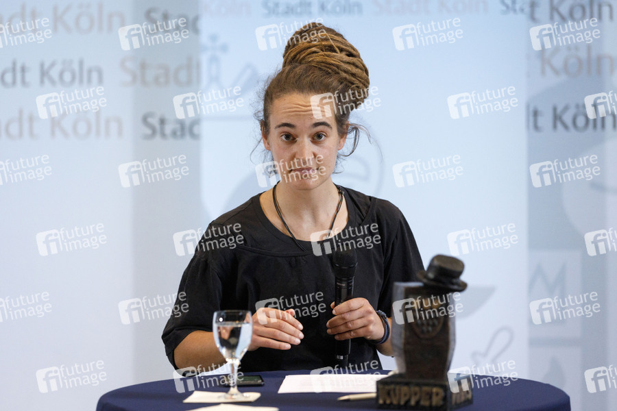 Carola Rackete erhält die mit 10.000 Euro dotierte Auszeichnung für ihr besonderes Engagement in der Flüchtlingshilfe bei der Verleihung des Karl-Küpper-Preises, der dieses Jahr zum 1. mal in Köln an Menschen vergeben wird, die sich für den Schutz der Demokratie und gegen Rassismus, Antisemitismus und jede Form der Diskriminierung engagieren, im Rathaus. Köln, 19.10.2020