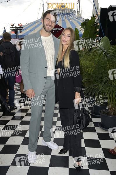 Dennis Gries und Katharina Katja Geretschuchin beim About You Fashion Circus in Adlershof-Johannisthal. Berlin, 04.07.2024