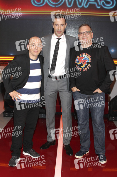 Bernhard Hoecker, Kai Pflaume und Elton bei der Aufzeichnung der ARD-Quizshow 'Wer weiß denn sowas? XXL' im Studio Hamburg. Hamburg, 24.06.2019