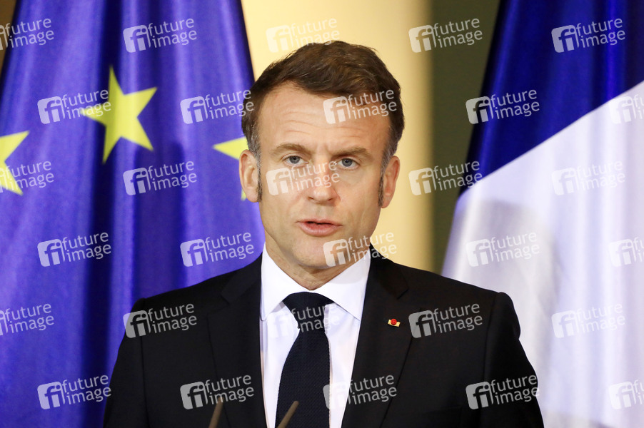Emmanuel Macron beim Empfang des Staatspräsidenten der Französischen Republik zu einem gemeinsamen Gespräch mit dem Bundeskanzler mit anschließendem Pressestatement im Bundeskanzleramt. Berlin, 18.03.2025