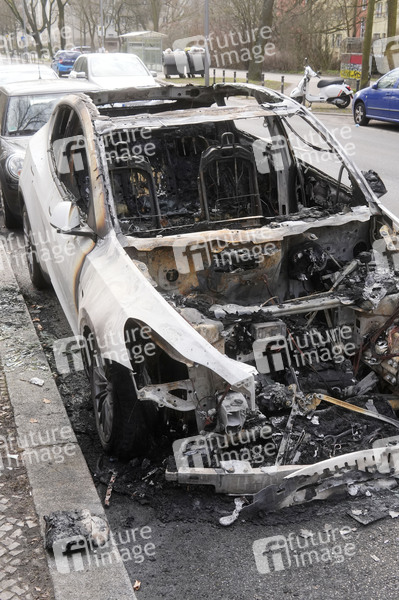 Brand, Feuer, Auto, PKW, Autowrack, Autowracks, Brandstiftung, Fahrzeug, Umweltverschmutzung, Symbolfoto, Symbolbild, Themenfoto, Symbolfoto, Autobrand, Protest gegen Elon Musk