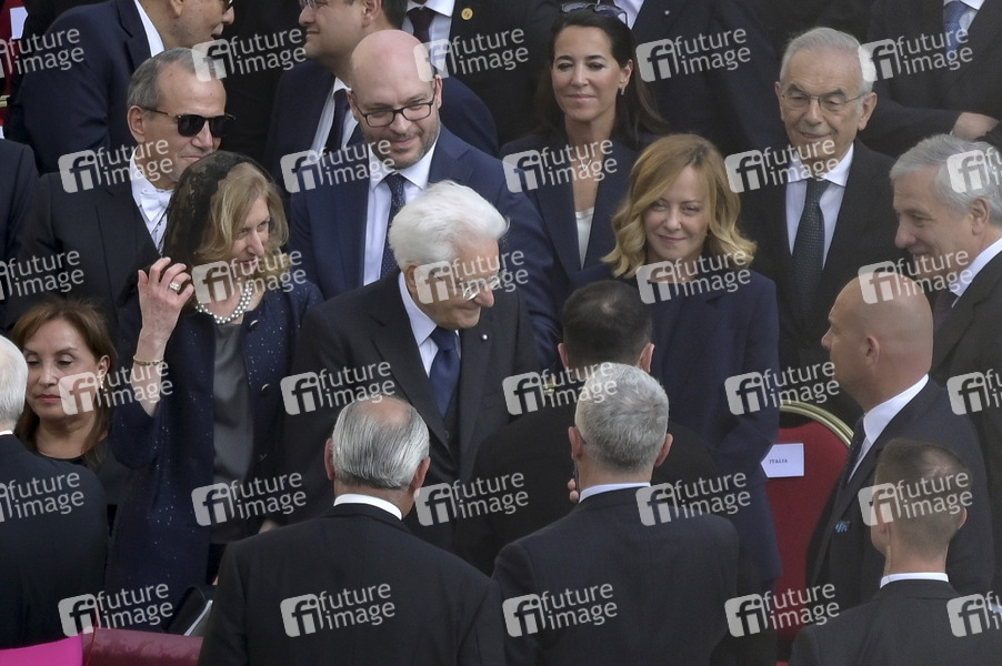Enthronement, Amtseinführung, Pontifex, Kirche, Religion, Oberhaupt der römisch-katholischen Kirche, Souverän des Vatikanstaats, Vatikan, Präsident der Ukraine, Ministerpräsidentin von Italien, Politiker, Politikerin, Volodymyr Zelenskyy, Präsident der Italienischen Republik