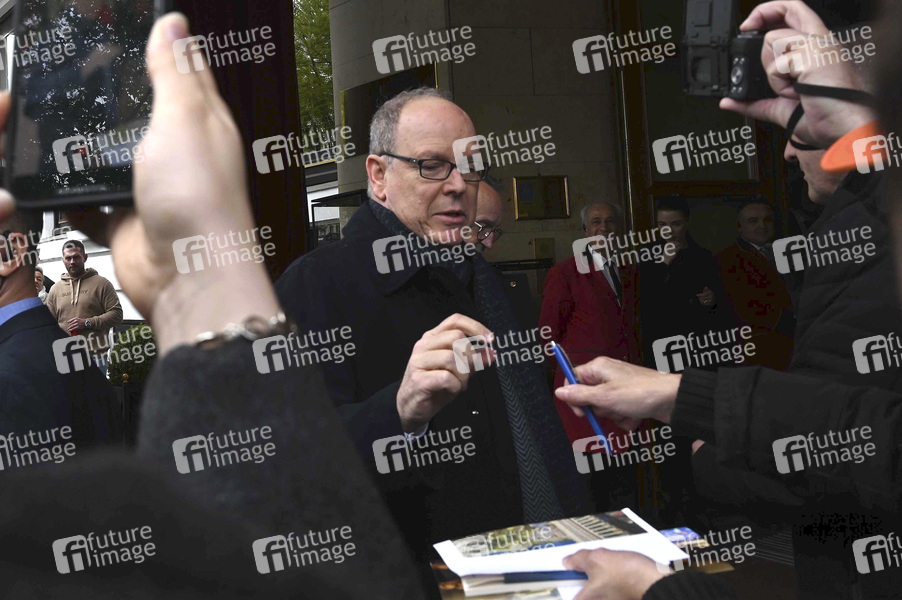 Fürst Albert II. von Monaco mit Fürstin Charlene bei ihrer Ankunft im Hotel Vier Jahreszeiten. Die Fürstenfamilie ist zur Eröffnung des Monaco-Abschnitts im Miniatur Wunderland nach Hamburg gekommen. Hamburg, 25.04.2024