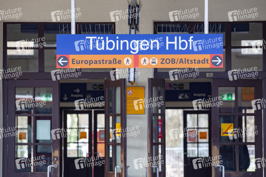 Tübingen Hauptbahnhof ist der größte Bahnhof der Universitätsstadt Tübingen und ein Nahverkehrsknotenpunkt in Baden-Württemberg. Tübingen, 13.04.2021