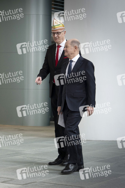 Olaf Scholz und Klaus-Ludwig Fess beim Empfang von Karnevalisten im Bundeskanzleramt. Berlin, 05.02.2025