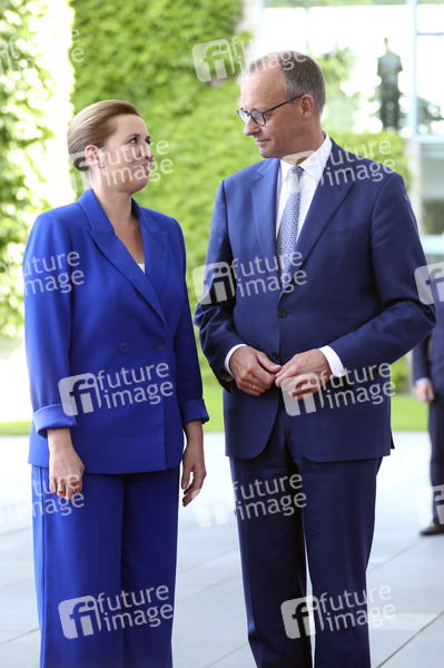 Mette Frederiksen und Friedrich Merz beim Empfang der dänischen Ministerpräsidentin mit militärischen Ehren zu einem gemeinsamen Gespräch mit anschließendem Pressestatement im Bundeskanzleramt. Berlin, 11.06.2025