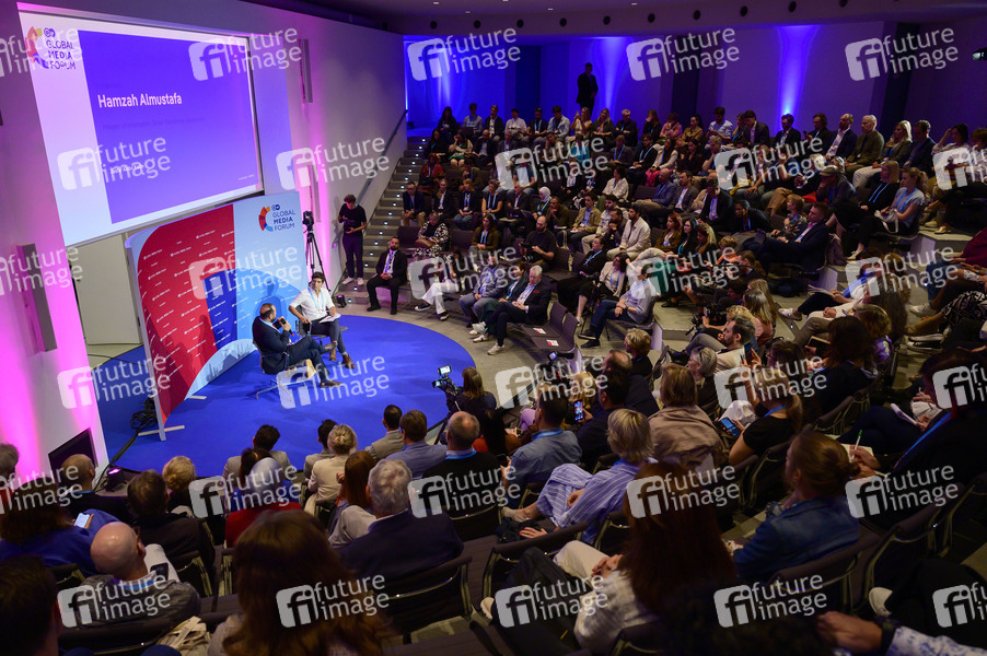 Internationale Medienkonferenz, globale Herausforderungen des Journalismus und der Medienwelt, Pressefreiheit, Desinformation, Digitalisierung, Künstliche Intelligenz, Konferenz, Gespräche, Diskussionen, syrischer Informationsminister, Moderator
