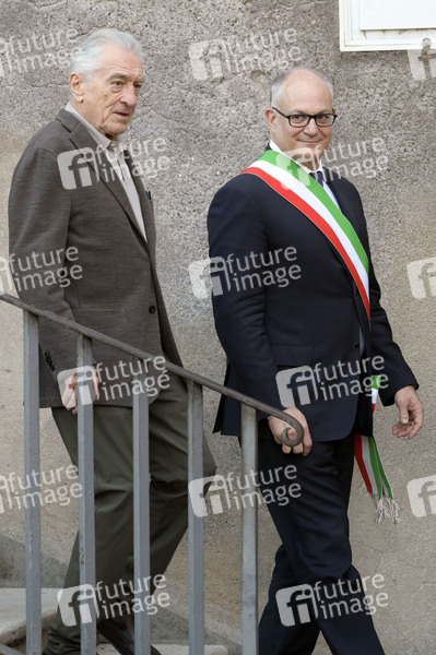 Robert de Niro und Roberto Gualtieri nach der Verleihung des Lupa Capitolina auf dem Kapitolsplatz. Rom, 06.11.2025