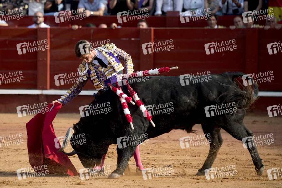 El Juli beim Stierkampf zu Ehren von Maria de las Mercedes de Borbón in der Stierkampfarena von Aranjuez. Der ehemalige König Juan Carlos I. hat hier seinen letzten Auftritt, bevor er sich aus den öffentlichen Leben zurückzieht. Aranjuez, 02.06.2019