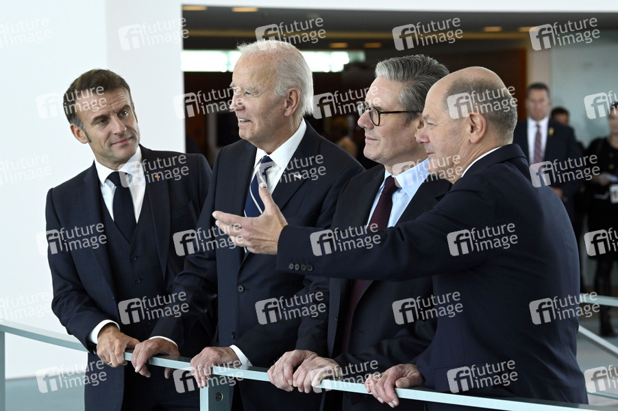 Emmanuel Macron, Joe Biden, Keir Starmer und Olaf Scholz beim QUAD Treffen im Bundeskanzleramt. Berlin, 18.10.2024
