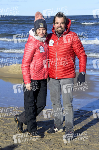 Jessica Ginkel mit Ehemann Daniel Fehlow beim Baltic Lights 2023 Charity-Hunderennen zu Gunsten der Welthungerhilfe zwischen der Seebrücke Ahlbeck und der Seebrücke Heringsdorf. Heringsdorf, 04.03.2023