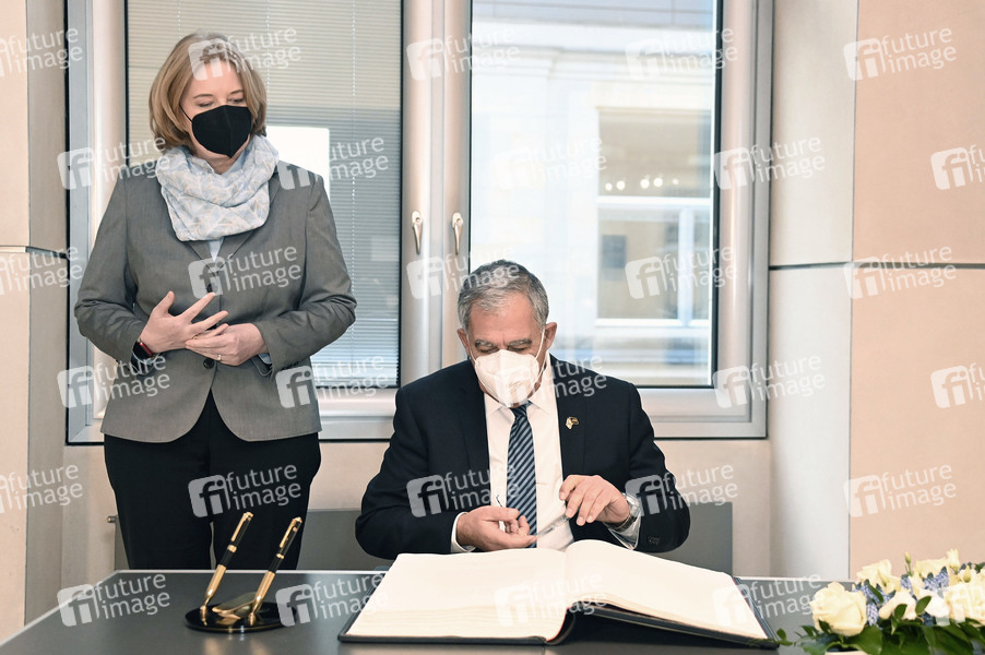 Bärbel Bas und Mickey Levy beim Empfang des Präsidenten der Knesset des Staates Israel und dem Eintrag in das Gästebuch des Bundestages im Reichstagsgebäude. Berlin, 25.01.2022
