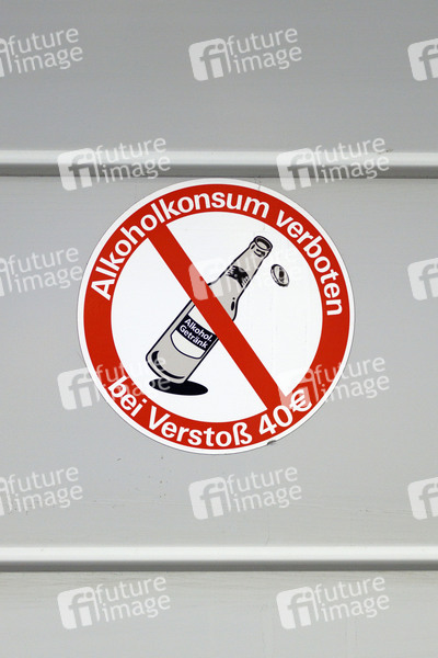 Bahnhof, U-Bahn, Straßenbahn, Haltestelle, Trinker, Trinken, Alkohol, Alkoholkonsum, Bier, Biertrinken, Flaschenbier, Wegebier, Alkoholkonsumverbot, Alkoholverbot, Sucht, alkoholfreier Bahnhof, Hinweis, Rücksicht, Regeln, Glasscherben, Verbot, Verbotsschild, Verbotskultur, Rücksichtnahme, Symbole, Hinweisschilder, Knöllchen, Ordnungsgeld, Symbolbild, Symbolfoto