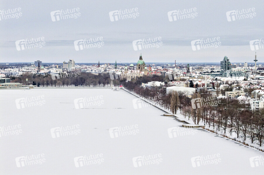 Luftbild vom Maschsee im Winter nach dem Sturmtief Elli. Hannover, 10.01.2026