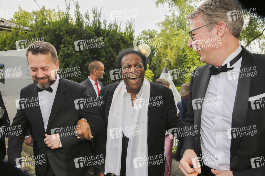 Gast, Roberto Blanco und Markus Blume bei der Eröffnung der 112. Richard-Wagner-Festspiele 2024 mit der Neuinszenierung von 'Tristan und Isolde' im Bayreuther Festspielhaus. Bayreuth, 25.07.2024