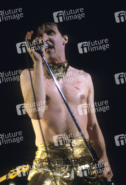 Lux Interior von The Cramps live im Hammersmith Odeon. London, 16.03.1986