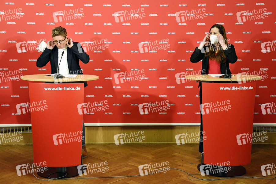 Susanne Hennig-Wellsow und Janine Wissler bei der Pressekonferenz zur Vorstellung der neuen Vorsitzenden der Partei Die Linke im Karl-Liebknecht Haus. Berlin, 01.03.2021