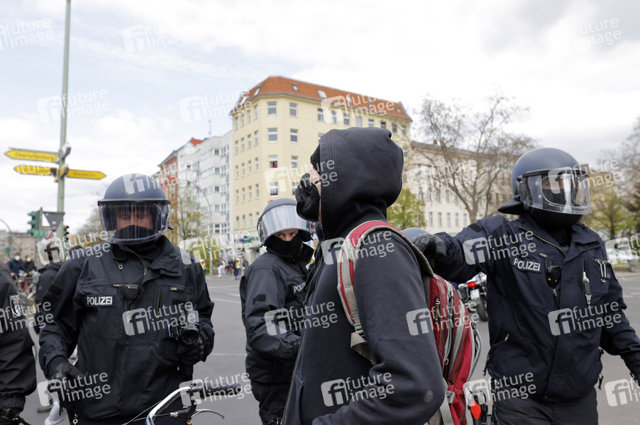 Demonstration in Kreuzberg unter dem Motto 'Generation miteinander - Herzensangelegenheit' aus dem Kreis der Querdenker-Bewegung. Am Rande der Demo kam es zu zahlreichen Gegenprotesten. Berlin, 24.04.2021
