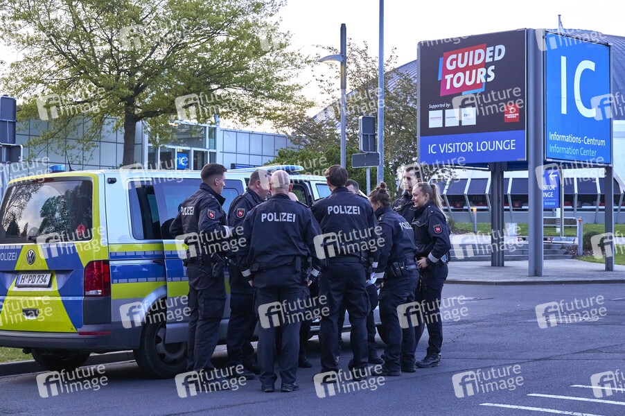 Polizeiaufgebot beim Eröffnungsrundgang auf der Hannover Messe 2024 auf dem Messegelände. Hannover, 22.04.2024