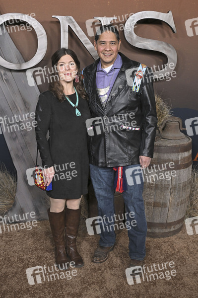 Mary Kathryn Nagle und Jonodev Chaudhuri bei der Premiere der Netflix-Serie 'The Abandons' im Netflix Tudum Theater. Los Angeles, 03.12.2025