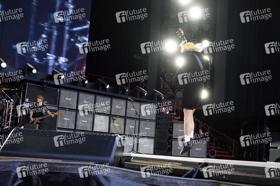 Chris Chaney und Angus Young von AC/DC live bei einem Konzert der 'Power Up Tour - Europa 2025' im Olympiastadion Berlin. Berlin, 30.06.2025