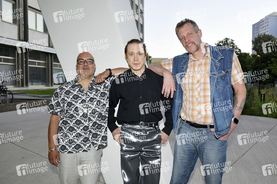 Uwe Kamitz, Timo Jacobs und Fred Aaron Blake bei der Open Air Preview des Kinofilms 'Hochstapler und Ponys / Impostors and Ponies' im Freiluftkino im FMP1. Berlin, 16.08.2025