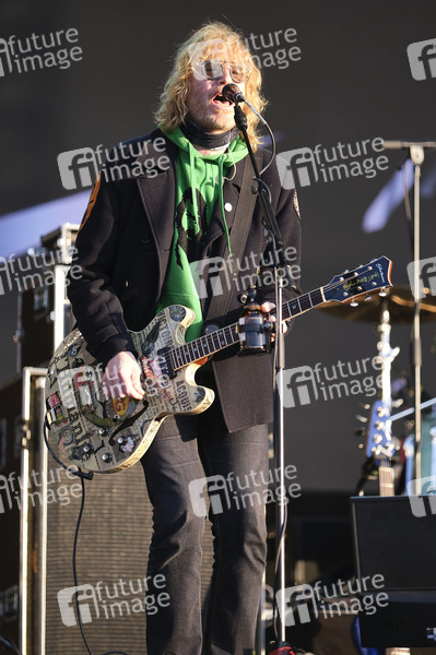 Christof Stein-Schneider von Fury in the Slaughterhouse live beim Autokultur-Konzert auf dem Schützenplatz. Die Besucher verfolgen unter Berücksichtigung klarer Hygiene-Vorschriften während der Corona-Krise den Auftritt aus dem Auto. Hannover, 14.05.2020