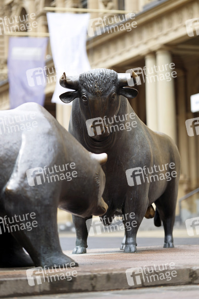Bulle und Bär vor der Frankfurter Wertpapierbörse. Die Deutsche Börse hat im dritten Quartal unter anderem von den Turbulenzen am Strommarkt profitiert. Zudem zahlten sich zuletzt getätigte Übernahmen weiter aus. (Themenbild, Symbolbild) Frankfurt, 15.10.2021
