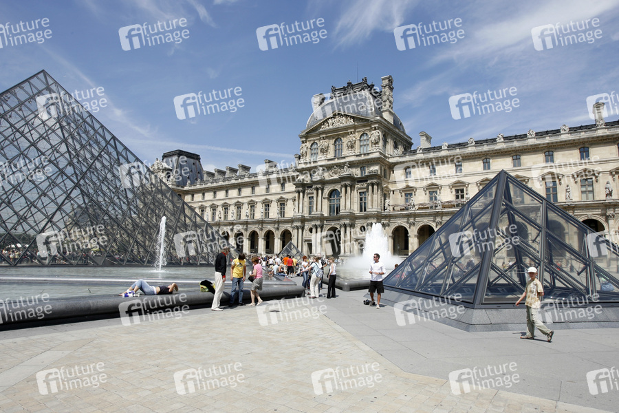 frühere französische Königsresidenz, das drittgrößte Museum der Welt, Baubeginn 1190, der Louvre entwickelte sich aus eine ganzen Reihe von Bau- und Umbaumaßnahmen, Glaspyramide im Innenhof 1989 erbaut vom Architekten Ieoh Ming Pei