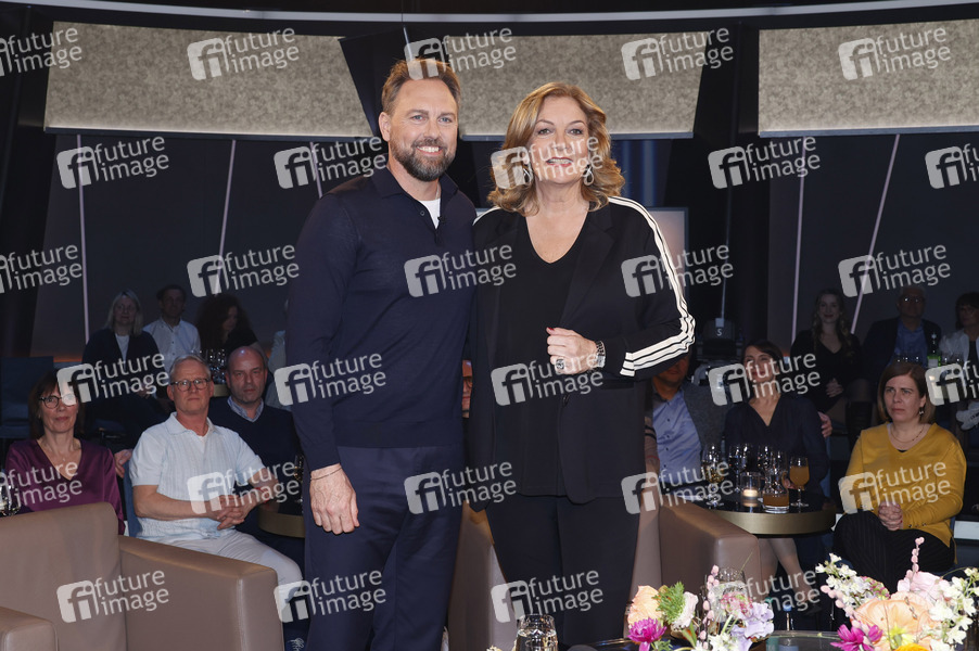 Steven Gätjen und Bettina Tietjen bei der Aufzeichnung der 'NDR Talk Show' im NDR Fernsehstudio Lokstedt. Hamburg, 07.03.2025
