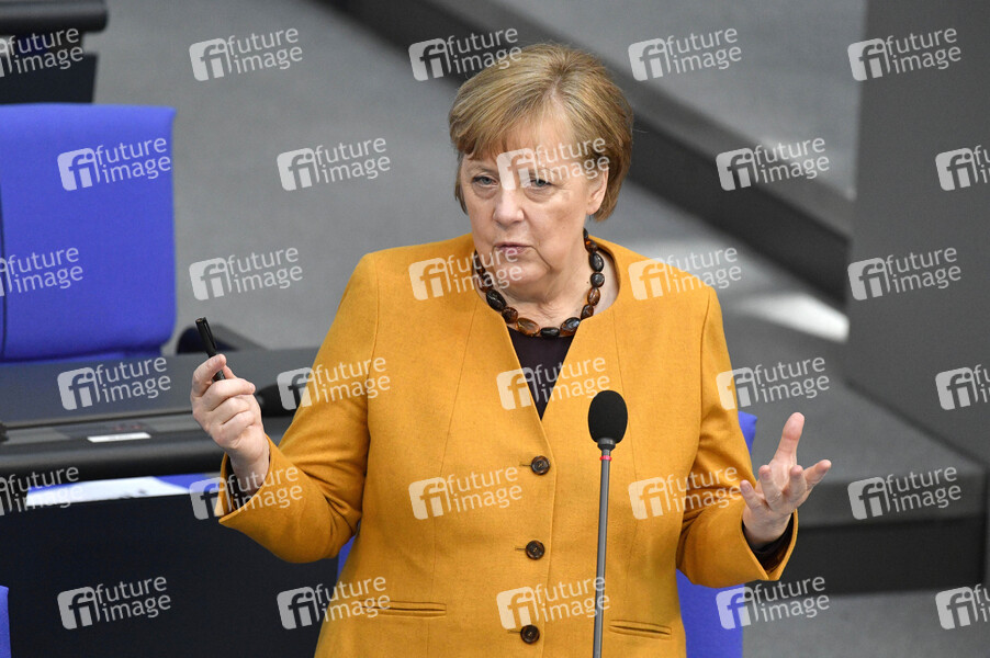 Angela Merkel in der 217. Sitzung des Deutschen Bundestages im Reichstagsgebäude. Berlin, 24.03.2021