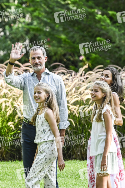 König Felipe VI. von Spanien, Prinzessin Leonor, Prinzessin Sofia und Königin Letizia von Spanien beim Sommer Photocall im Marivent Palace. Palma de Mallorca, 04.08.2019