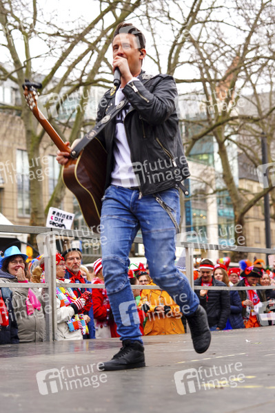 Manuel Sauer von Eldorado live beim traditionellen Funkenbiwak auf dem Neumarkt. Köln, 22.02.2020