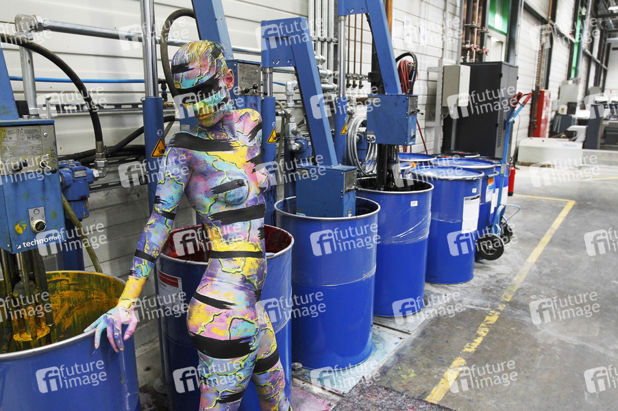 Jörg Düsterwald, einer der bekanntesten Bodypainting- und Bodyartkünstler Deutschlands macht auf seine ganz eigene Art auf die prekäre Situation freischaffender Künstler während der Corona-Pandemie aufmerksam: Unter dem Hashtag #WirzeigenFarbe hat der Hamelner Künstler in der Produktionshalle der Druckerei QUBUS media mit seinem Model Lisa ein ausdruckstarkes Live-Bodypainting inszeniert - denn Künstlerinnen und Künstler wie er sehen und fühlen sich derzeit wortwörtlich 'ausgezogen bis aufs letzte Hemd'. Und nichts symbolisiert diesen bekannten Spruch besser als ein Bodypainting auf nackter Haut in einer Umgebung, in der es jeden Tag um Farbe geht. Die Live-Performance fand mit dem zeitgleichen Druckstart von Jörg Düsterwald's neuem Premiumkalender 'Bodypainting in Nature 2021' statt. Hannover, 14.07.2020