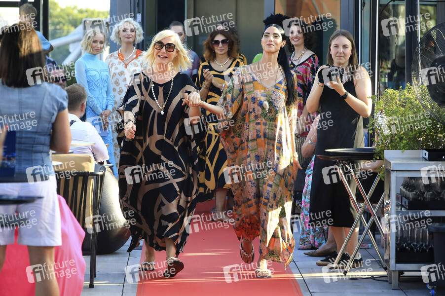 Zoe Helali und Sylke Schumann aka Celia von Barchewitz bei der Rooftop Fashion Show von Viktoria Varga und Celia von Barchewitz und Charity Gala auf der Dachterrasse Bar Cabana im Innside by Melia. Leipzig, 13.08.2024