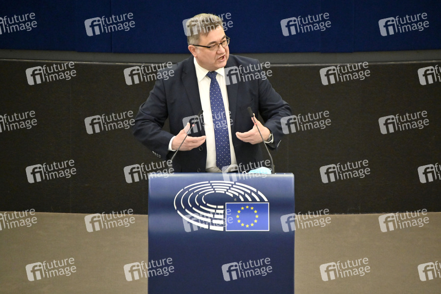 Grzegorz Tobiszowski bei einer Plenartagung zum sechsten Bewertungsbericht des Weltklimarats der Vereinten Nationen zum Klimawandel im Plenarsaal des Europäischen Parlaments. Straßburg, 04.04.2022