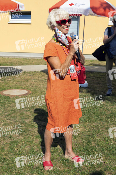 Monika Ehrhardt-Lakomy bei der Eröffnung des ersten bundesweiten Traumzaubergartens nach Motiven aus dem 'Traumzauberbaum' von Reinhard Lakomy in der DRK-Kindertagesstätte 'Findikus'. Bautzen, 12.08.2020