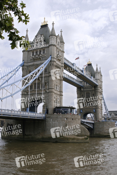 Klappbrücke, Neugotik, 244 Meter lang, Höhe der Brückentürme 65 Meter, die Fahrbahn zwischen den 61 Meter voneinander entfernten Türmen liegt neun Meter über dem Fluss, Fußgängerbrücke in 43 Meter Höhe, die beiden Baskülen können bis zu einem Winkel von 83 Grad hochgeklappt werden, Architekt Horace Jones, erbaut 1886 bis 1894, Themse