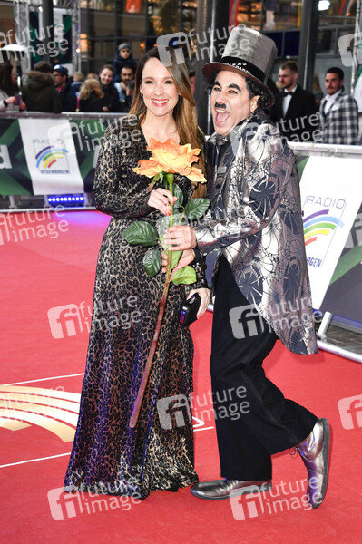Carolin Kebekus und Albert de Paris alias Charlie Chaplin bei der Verleihung des 22. Radio Regenbogen Award 2019 in der Europa-Park Arena. Rust, 12.04.2019