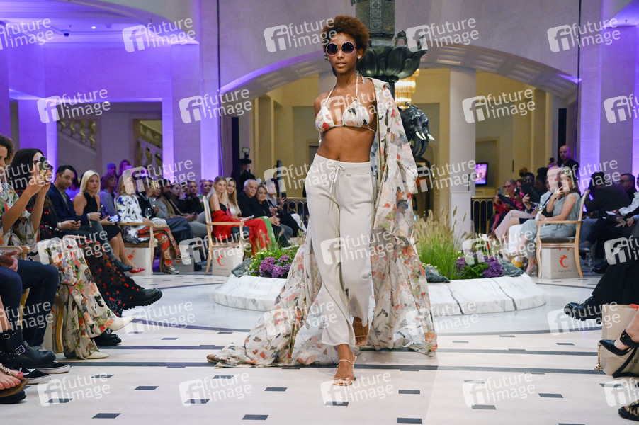 Model bei der Anja Gockel Fashion Show 'Der Strand liegt unter dem Asphalt' auf der Fashion Week Berlin Spring/Summer 2022 im Hotel Adlon. Berlin, 07.09.2021