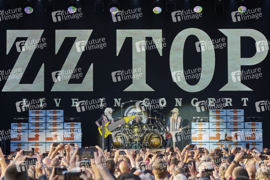 Elwood Francis, Frank Beard und Billy Gibbons von ZZ Top live beim Sommerfestival 2024 unter dem Motto 'Beats, Bands und Beach' in der Autostadt. Wolfsburg, 13.07.2024