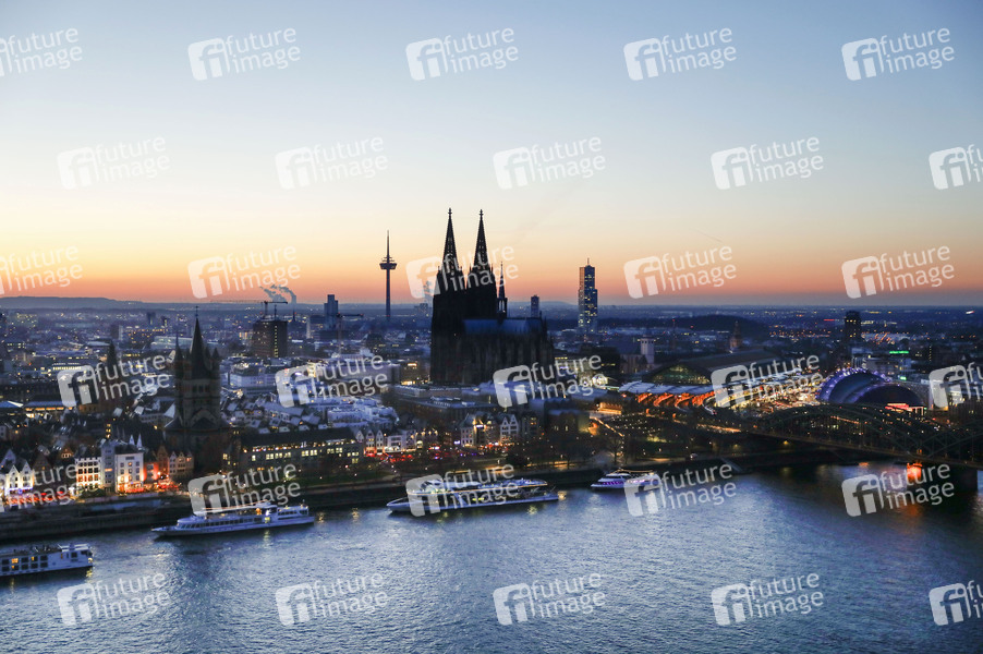Köln Innenstadt linksrheinisch in Köln mit Abendhimmel nach dem Sonnenuntergang. Köln, 02.11.2024